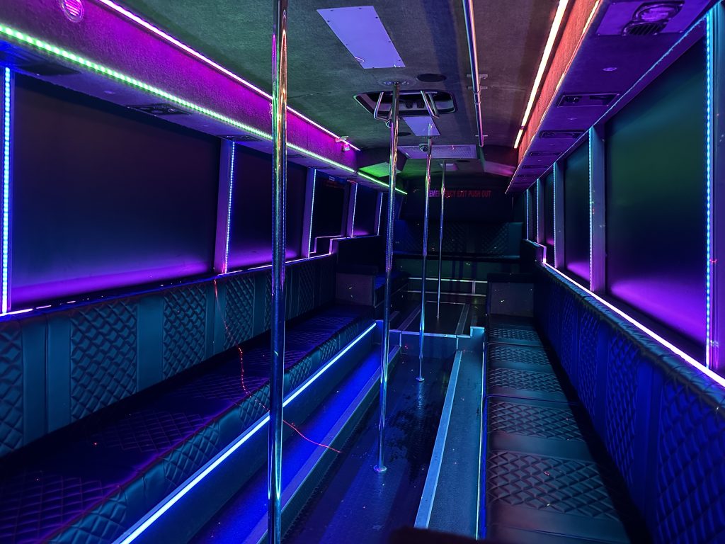 Elevate your revelry with a designated dance floor, inviting you and your guests to express your moves. On our 40+ seat buses, dance poles stand as a testament to the pulsating energy and dance-floor freedom you deserve.